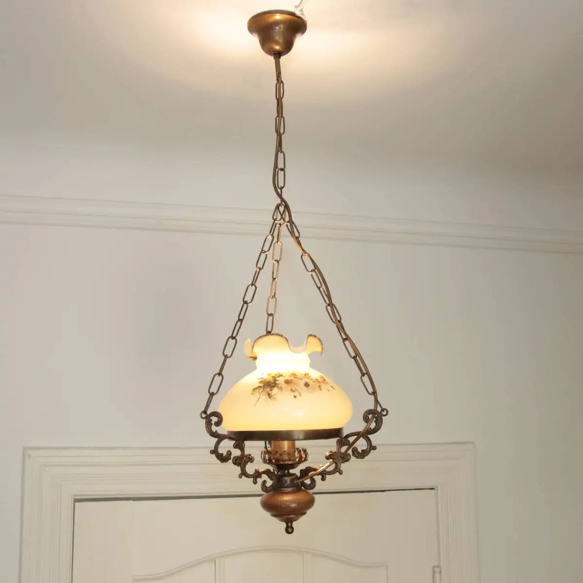 Deckenlampe Hängelampe Petroleum Glasschirm 90cm Vintage