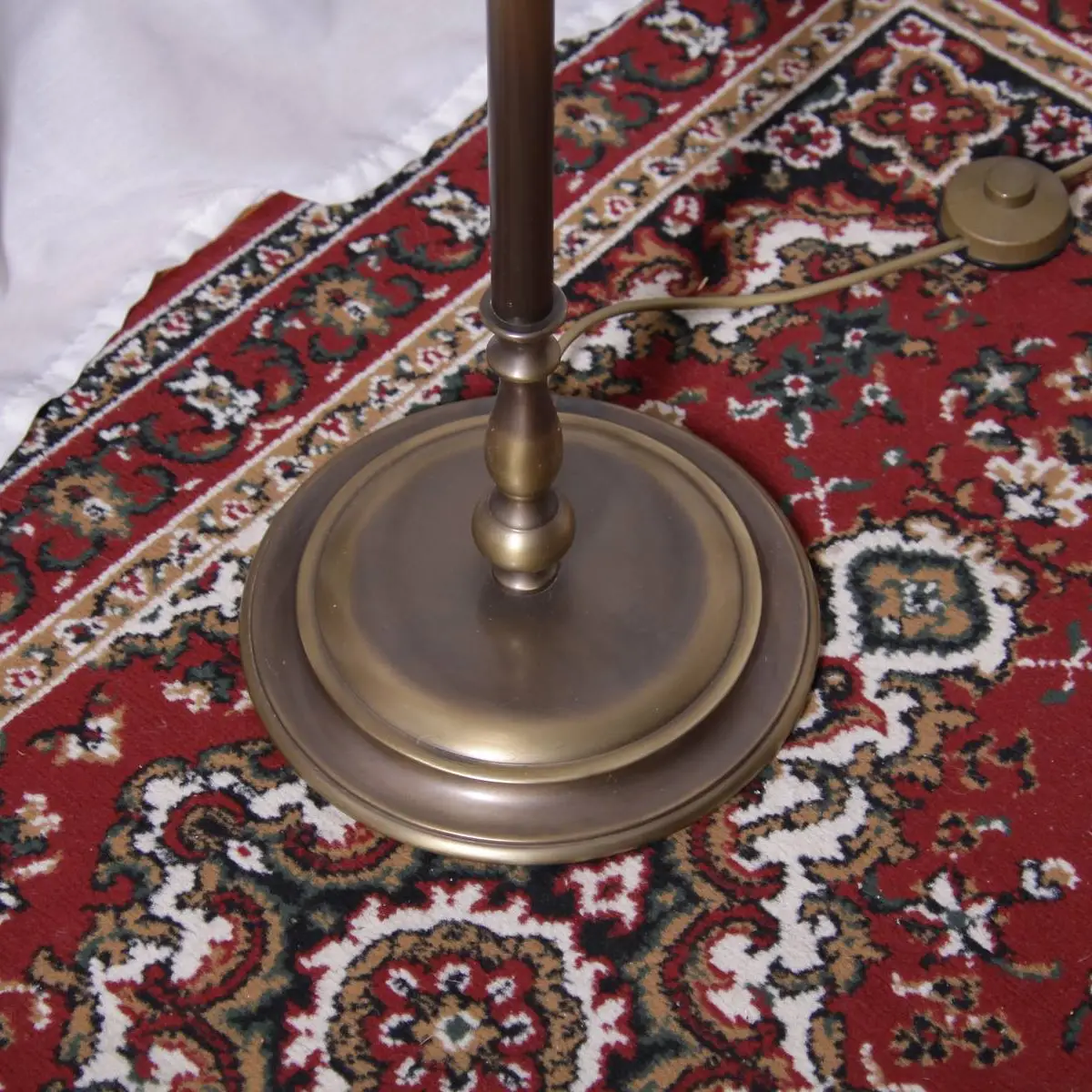 Die Materialwahl aus Messing in Kombination mit dem klassischen Lampenschirm erzeugt einen authentischen Retro-Charakter, der sowohl in historisch eingerichteten Umgebungen als auch in modernen Interieurs als stilvoller Kontrast wirkt. Dank der zurückhaltenden Proportionen lässt sich die Lampe flexibel in verschiedenen Räumen platzieren, ohne optisch aufzutragen. Pflegehinweise sind gering: regelmäßiges Abwischen mit einem weichen, trockenen Tuch genügt, um den warmen Metallglanz zu erhalten.