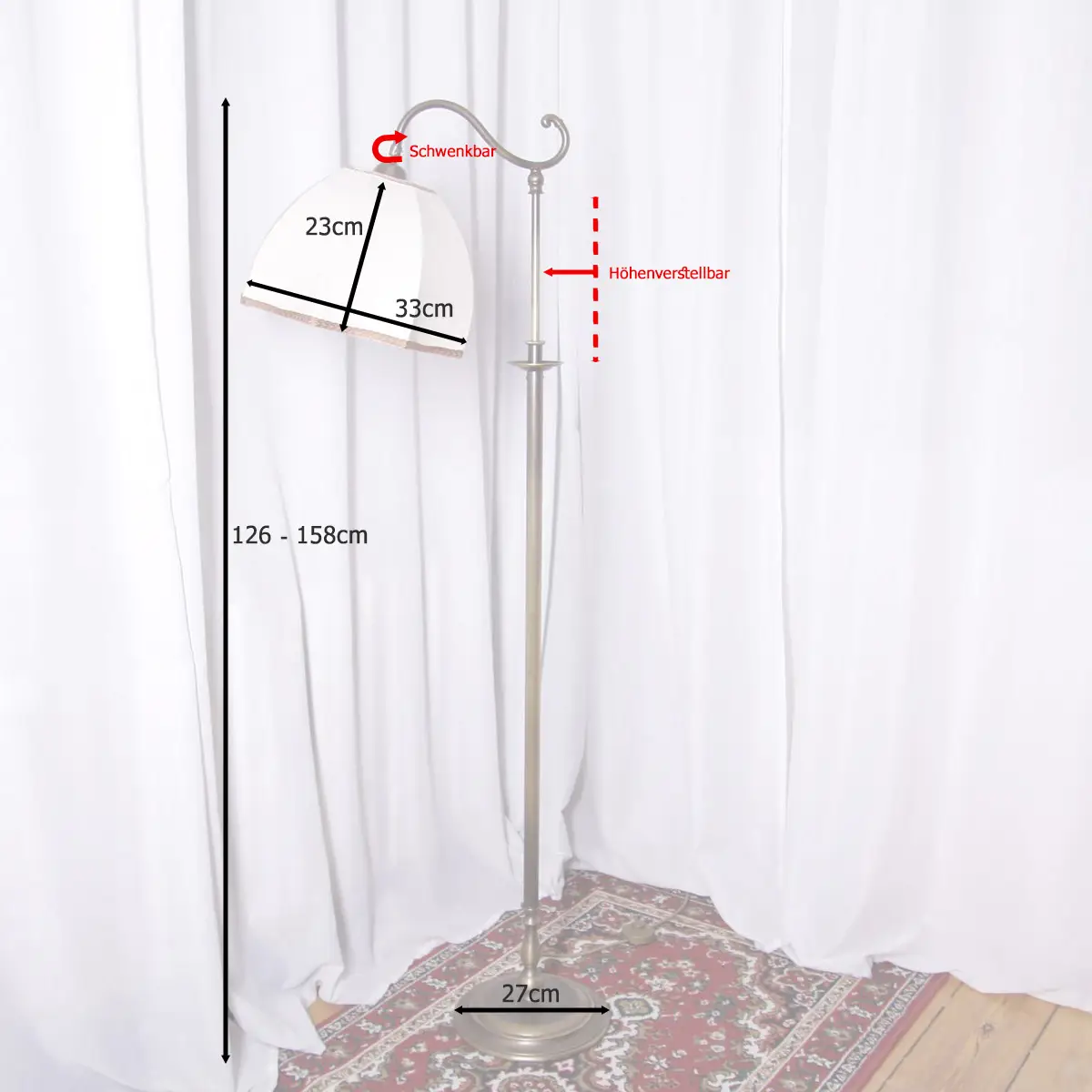 Technisch überzeugt die Leuchte durch einen schwenk- und höhenverstellbaren Lampenhals, der eine präzise Ausrichtung des Lichts erlaubt. Dadurch lässt sich eine gewünschte Lichtposition punktgenau einstellen — ob zum Lesen, als stimmungsvolle Beleuchtung neben einem Sofa oder zur gezielten Akzentuierung eines Dekorationsobjekts. Die Verstellmechanik ist leichtgängig und stabil, sodass die gewählte Einstellung sicher gehalten wird.