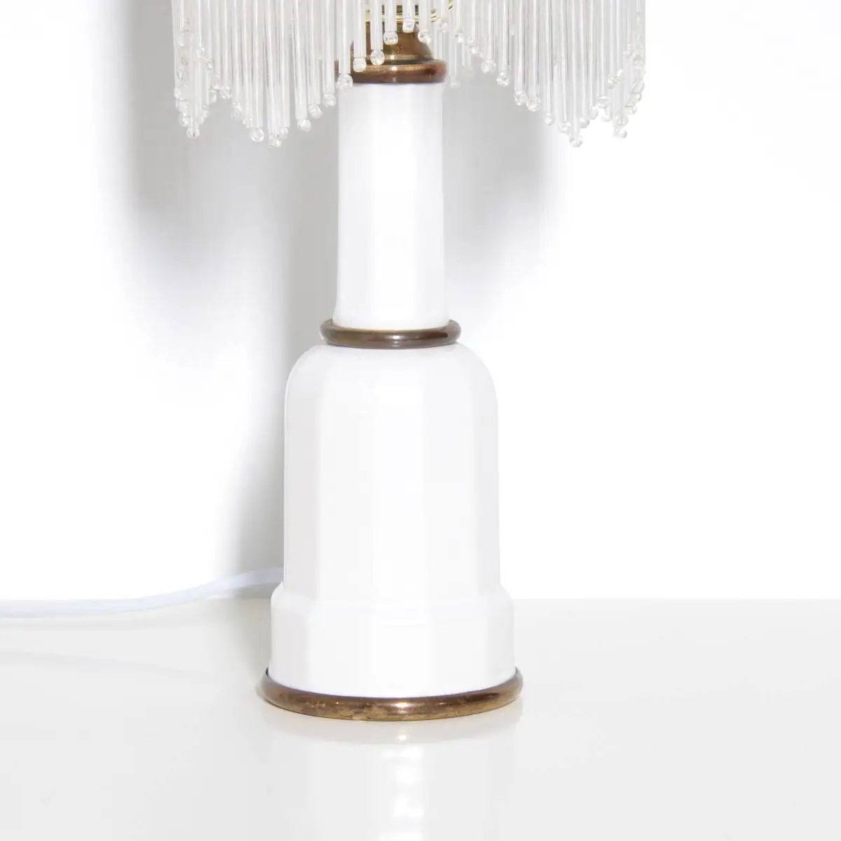 Tischlampe Glasschirm Glasperlen Porzellan 43cm 70er J Vintage