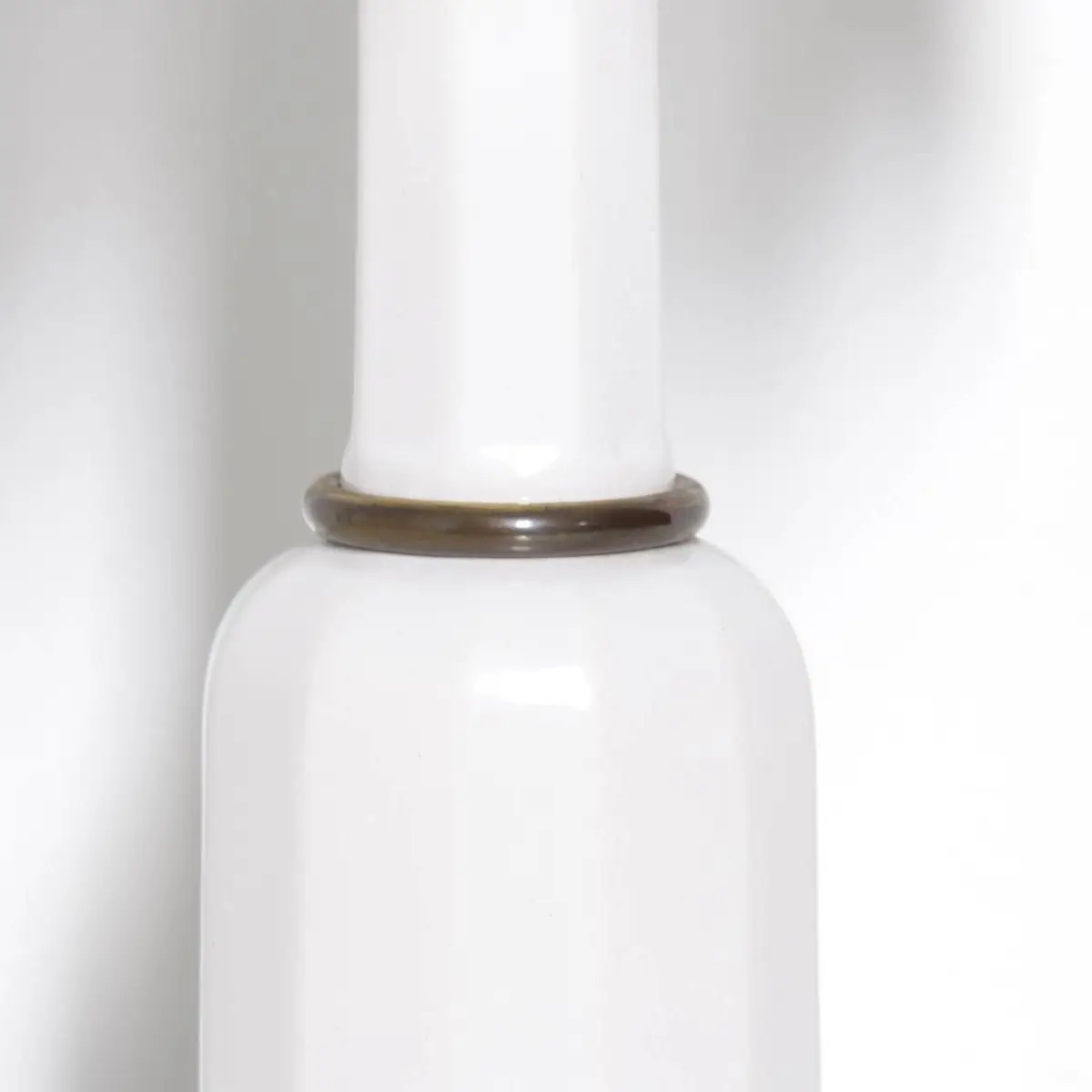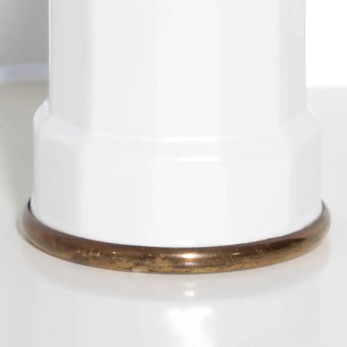 Porzellan-Messing-Tischlampe aus der Stilwelt der 1970er-Jahre, gefertigt mit einem harmonischen Zusammenspiel aus hochwertigen und dekorativen Materialien. Der Lampenfuß besteht aus fein gearbeitetem Porzellan, das durch Elemente aus Messing ergänzt wird. Diese Materialkombination verleiht dem Objekt eine solide, zugleich elegante Ausstrahlung und ist typisch für die anspruchsvolle Leuchtenproduktion dieser Epoche. Die Oberfläche zeigt eine dezente Patina, die den authentischen Charakter des Originals unterstreicht.