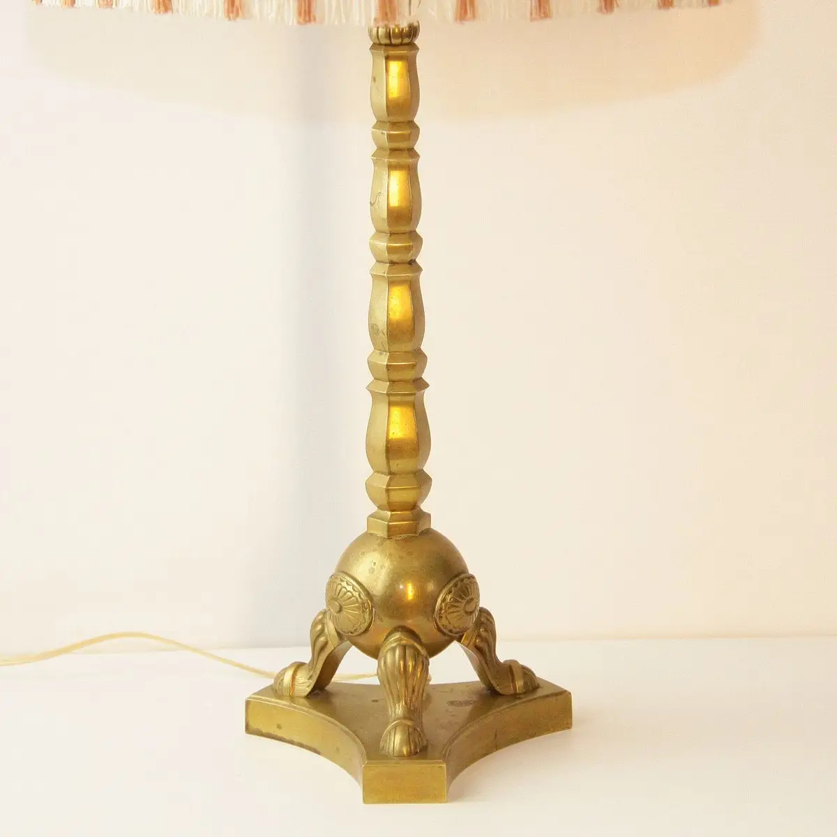 Tischlampe Messing Massiv Fransen 76cm 1970er Jahre Vintage