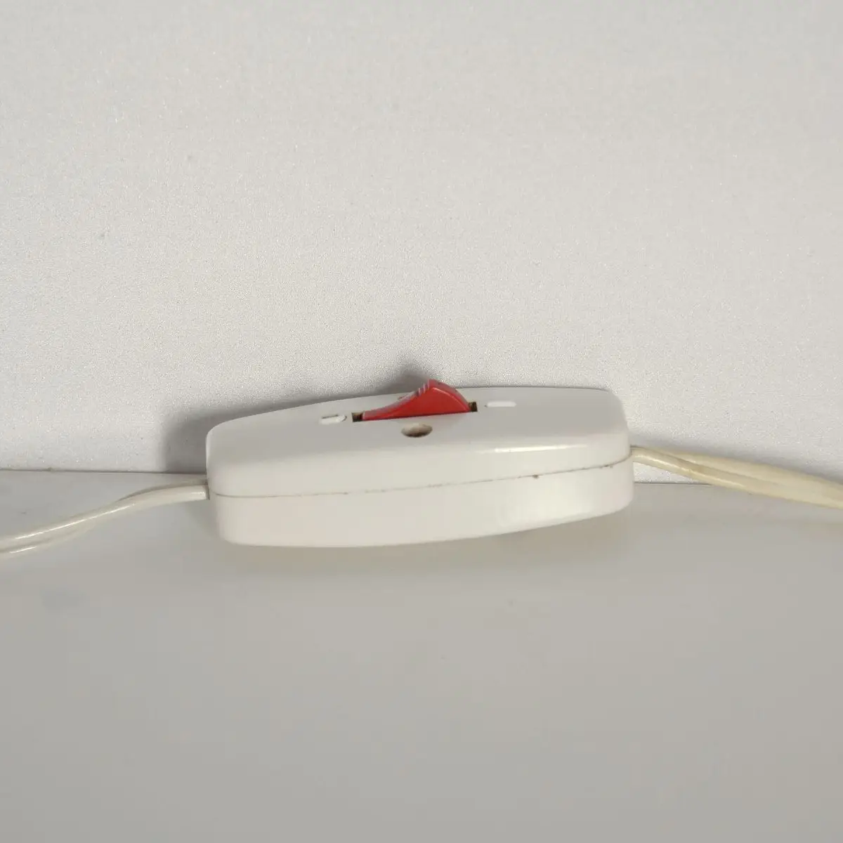 Der Lampenfuß zeigt leichte Gebrauchsspuren, die auf den beigefügten Bildern zu erkennen sind. Diese kleinen Spuren sind typisch für ein Möbelstück mit Geschichte und unterstreichen den Vintage-Charakter zusätzlich. Sie verleihen der Lampe eine gewisse Authentizität, die bei vielen Liebhabern von Retro-Design sehr geschätzt wird. Es handelt sich um Patina, die von der Zeit geschaffen wurde und ein Hinweis darauf ist, dass dieses Stück über Jahrzehnte hinweg genutzt und gepflegt wurde.