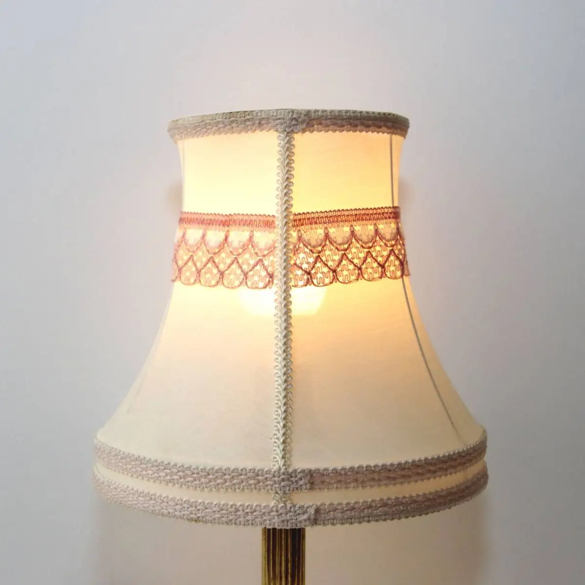 Tischlampe Messing Stoffbordüre 41cm 70er J Vintage