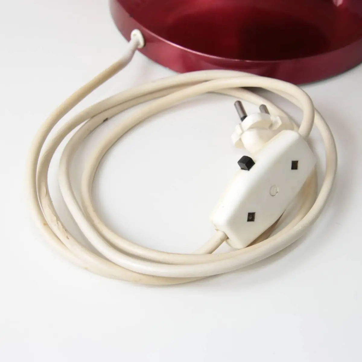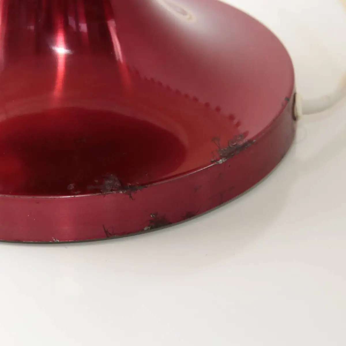 Vintage Tischlampe mit Stoffschirm und rotem Metallfuß – Retro Design